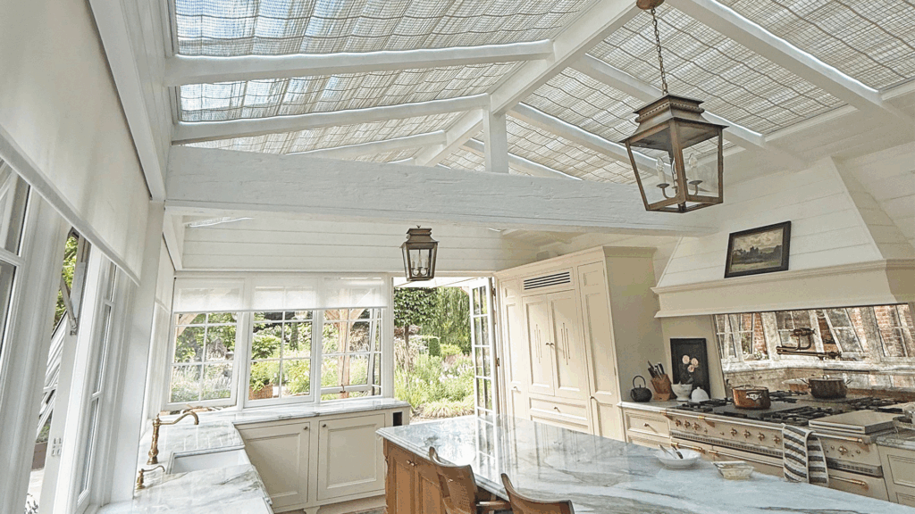 Roof lanterns are a stunning feature, but they can make kitchens hot and glaring. We specialise in roof lantern blinds, designed to neatly cover the glass and reduce both heat and glare. These can be manual or automated, so you can control the light without struggling to reach overhead.