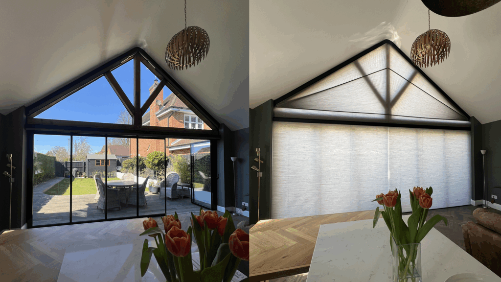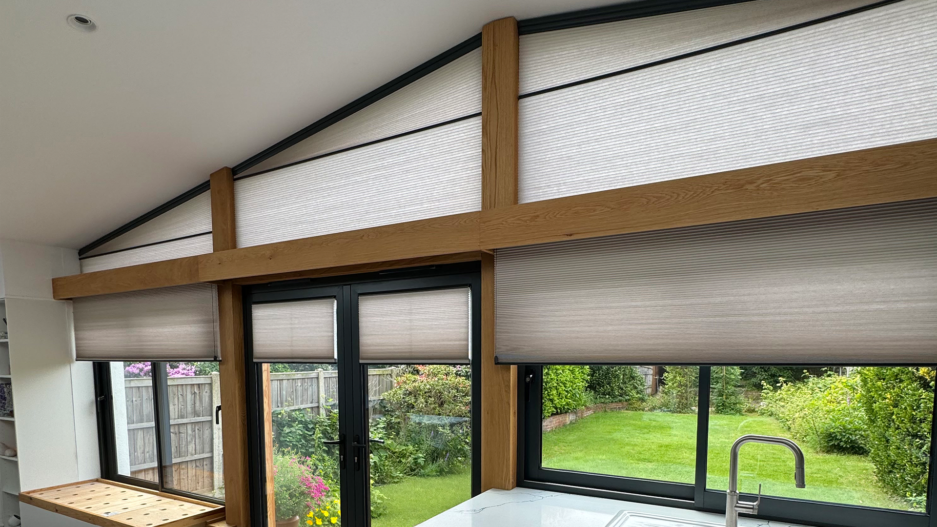 Absolutely. If your kitchen opens onto the garden with bifold doors, we can make bespoke blinds to fit them perfectly. Options include automated Duette® blinds or vertical systems that move seamlessly with the doors, giving you light control without blocking the view. Find out more about blinds for bifold doors.